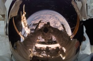 A “selfie” Anderson took during his time on the International Space Station during a lighter moment.